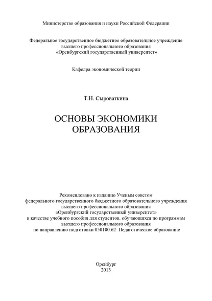 Основы экономики образования book by Т. Н. Сыроваткиной – download in FB2, TXT, EPUB, PDF or read online. Leave comments and reviews, vote for your favorites.