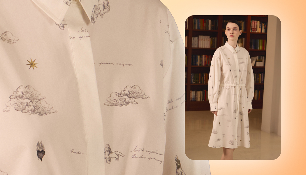 В капсулу вошли платья, футболки, юбки, костюмы и не только. Каждая вещь продолжает диалог литературы и моды, соединяя поэтическое наследие с актуальным гардеробом. «Неопытная муза» – коллекция для женщины, которая выбирает говорить о себе через литературу.