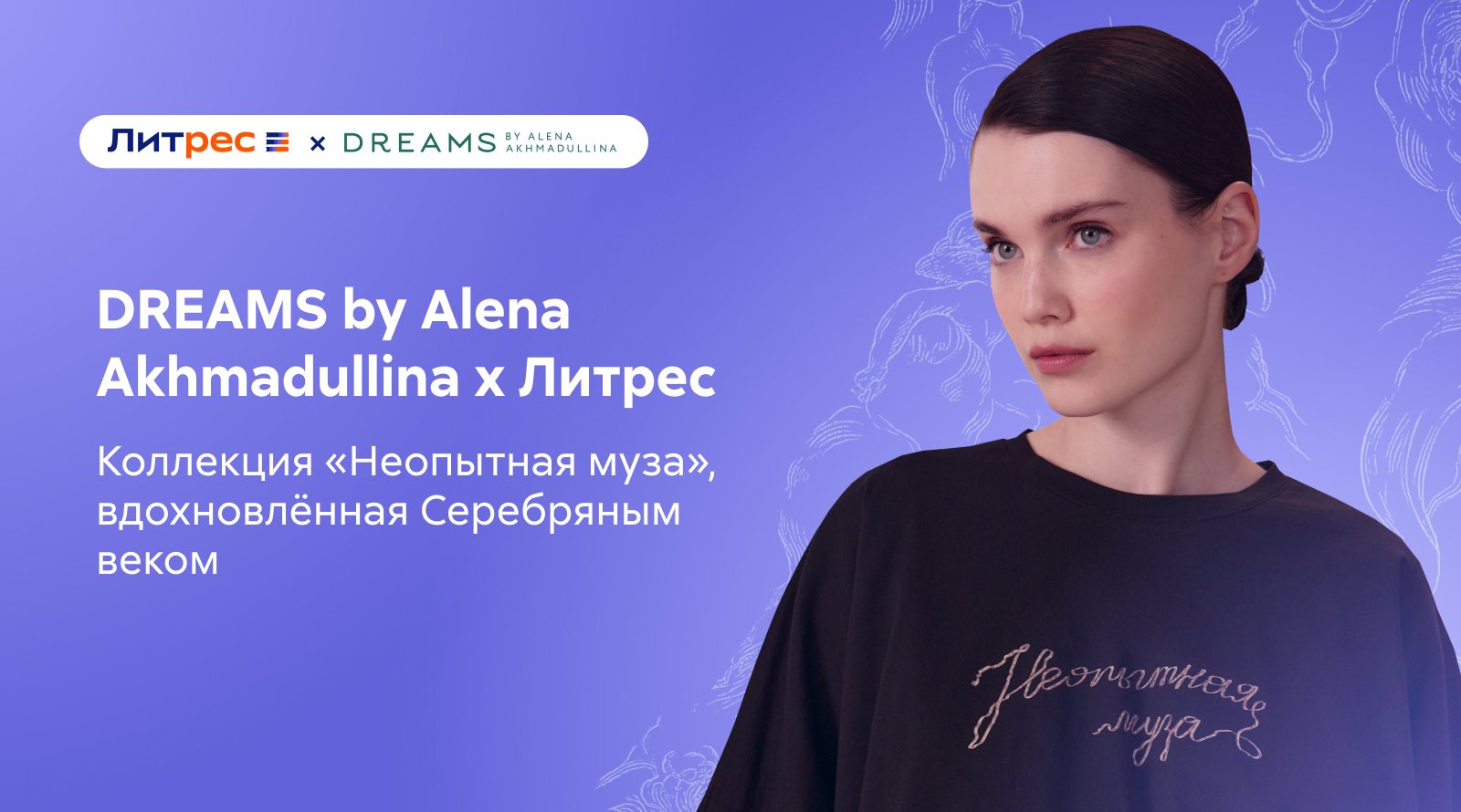 DREAMS by Alena Akhmadullina и Литрес выпустили совместную коллекцию «Неопытная муза», посвящённую русским поэтессам. Капсула объединяет моду и литературу, превращая поэтический текст в визуальный язык. Название выбрали в честь одноимённого сборника стихотворений Анны Буниной, одной из первых профессиональных русских поэтесс начала XIX века.