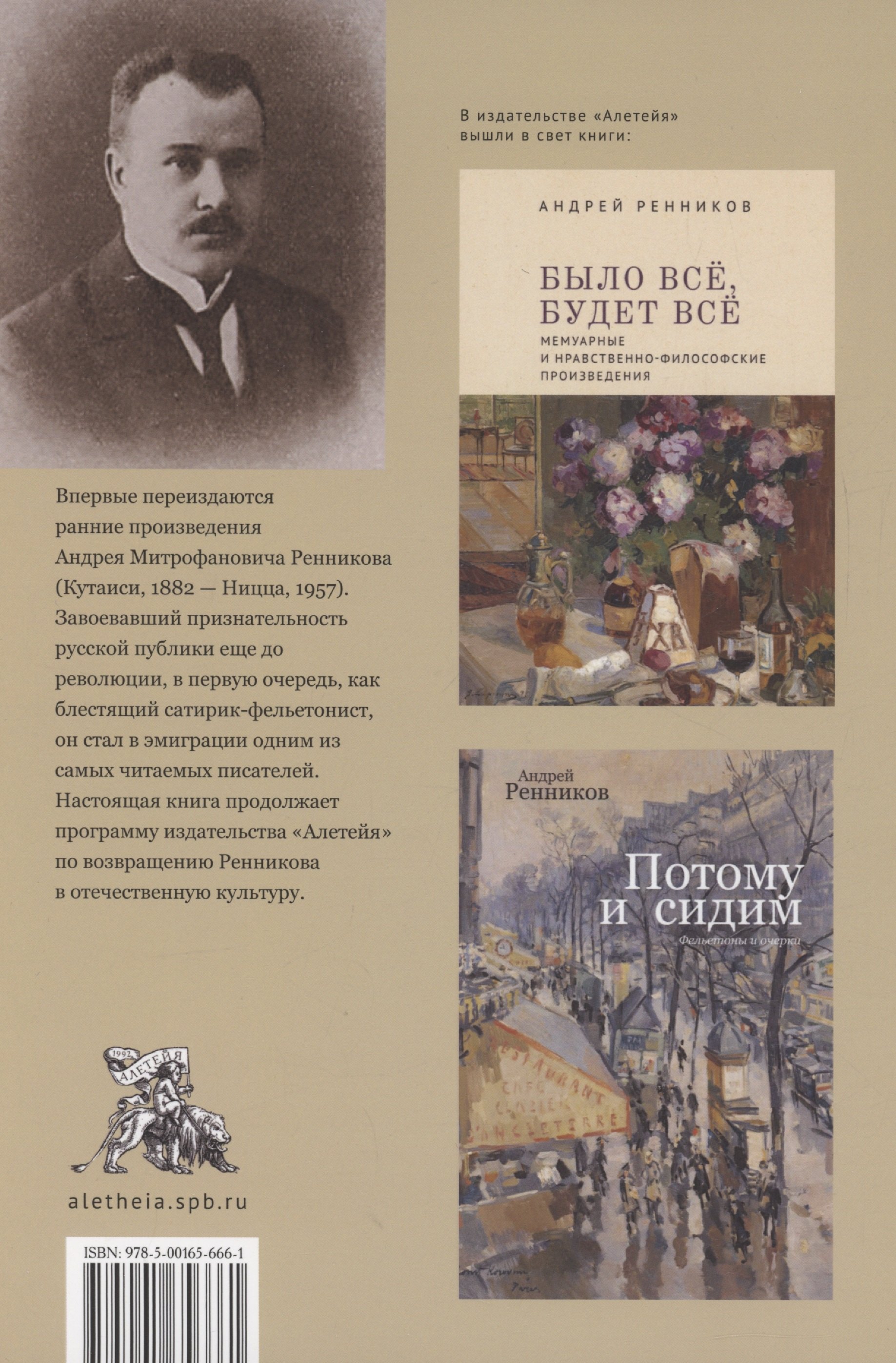 Впервые переиздаются ранние произведения незаслуженно забытого писателя Андрея Митрофановича Ренникова (Кутаиси, 1882 - Ницца, 1957). Завоевавший признательность русской публики еще до революции, в первую очередь, как блестящий сатирик-фельетонист, он стал в эмиграции одним из самых читаемых писателей. Настоящая книга продолжает программу издательства «Алетейя» по возвращению Ренникова в отечественную культуру, после уже двух выпущенных сборников текстов его эмигрантского периода - «Потому и сидим» и «Было всё, будет всё».