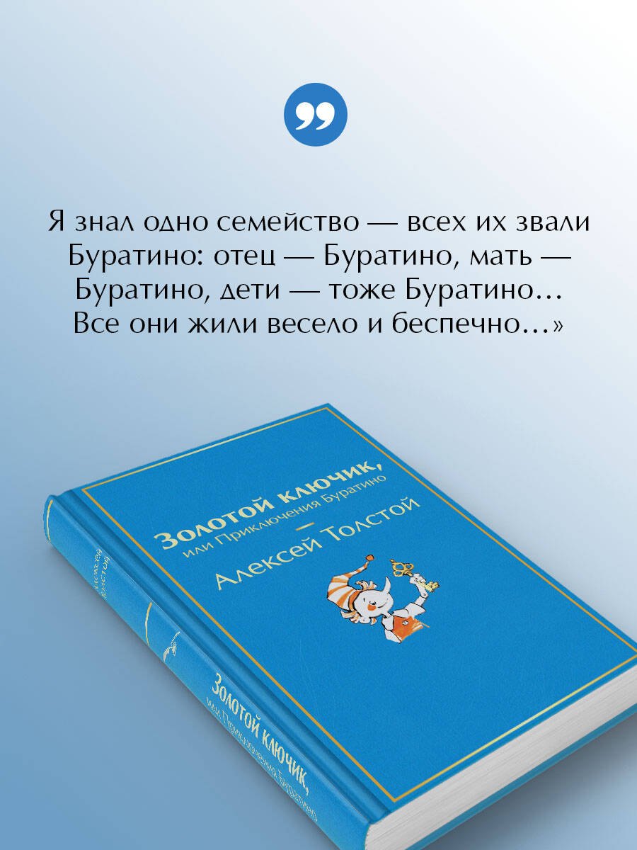 "Кто с доброй сказкой входит в дом и с детства каждому знаком", - БУ – ра – ти – но! Но всегда есть дети, кто еще не читал и не видел кино про Буратино – для них это издание с иллюстрациями Татьяны Глущенко. Буратино получился романтичный и наивный, а остальные герои - комические и нетривиальные.