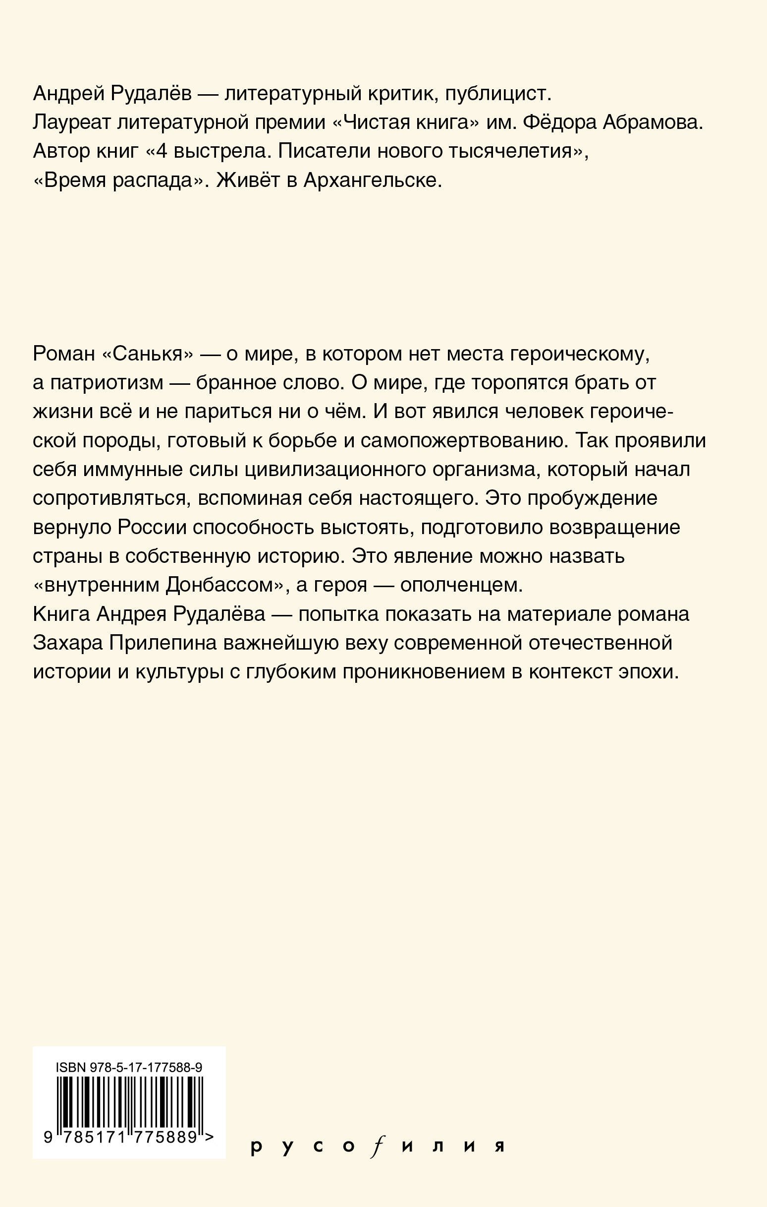 Книга Андрея Рудалёва — попытка показать на материале романа Захара Прилепина важнейшую веху современной отечественной истории и культуры с глубоким проникновением в контекст эпохи.
