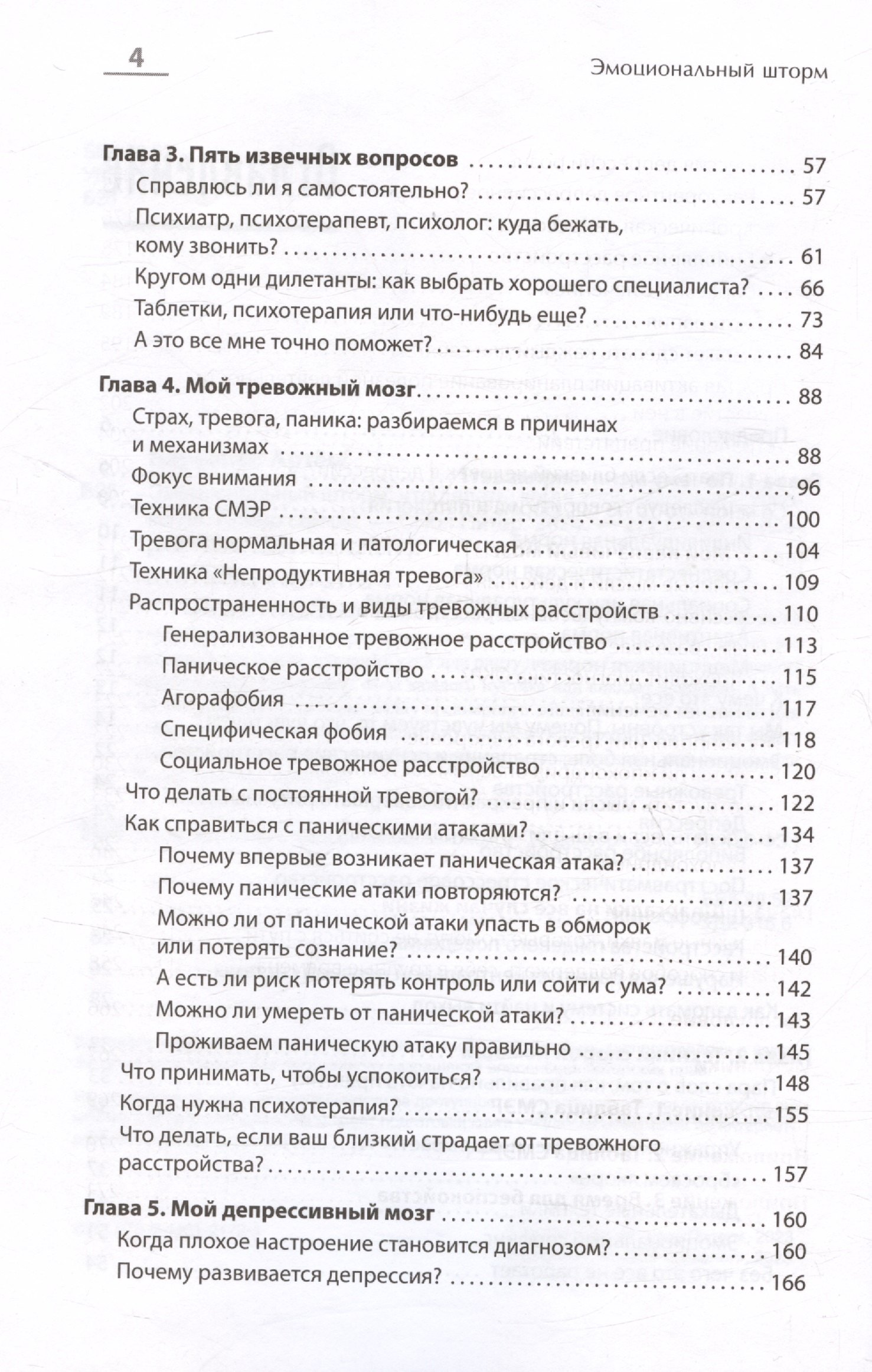 4. Мой тревожный мозг - эта глава посвящена трём китам: страх, тревога и паника. Причины, виды, механизмы, техники...