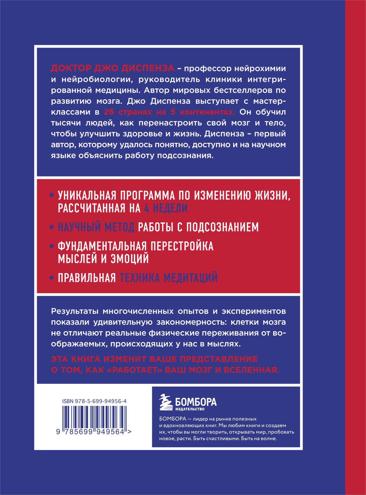 Доктор Диспенза — профессор нейрохимии и нейробиологии, руководитель клиники интегрированной медицины. Автор мировых бестселлеров по развитию мозга. Джо Диспенза выступает с мастер-классами в 26 странах на 5 континентах. Он обучил тысячи людей, как перенастроить свой мозг и тело, чтобы улучшить здоровье и жизнь. Диспенза — первый автор, которому удалось понятно, доступно и на научном языке объяснить работу подсознания.