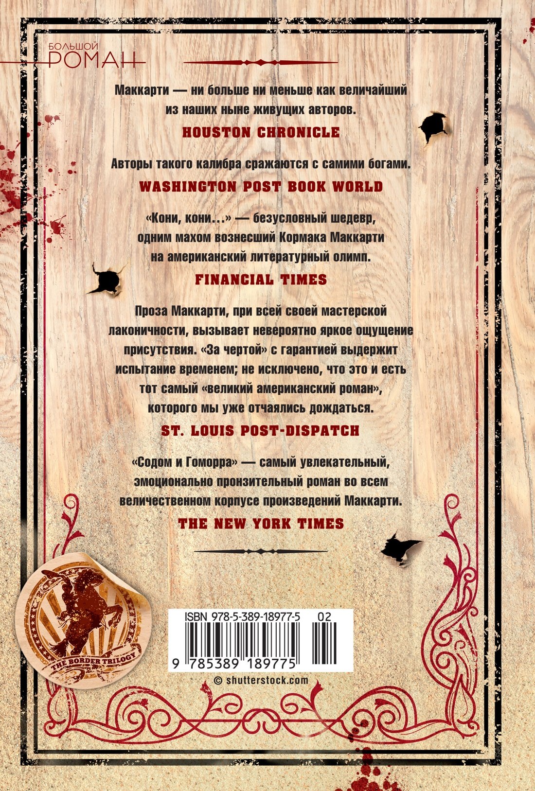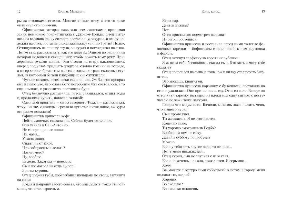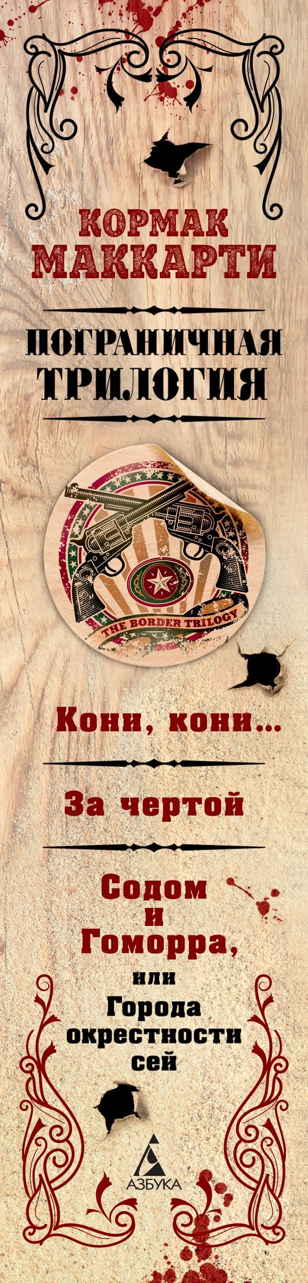Романы «Кони, кони…» (удостоенный Национальной книжной премии США и перенесенный на экран Билли Бобом Торнтоном, главные роли исполнили Мэтт Дэймон и Пенелопа Крус), «За чертой» и «Содом и Гоморра» составляют «Пограничную трилогию». Это великолепное сочетание героической саги и мелодрамы, проникнутое прямотой классического вестерна и элегичностью полузабытого мифа. Здесь юные герои – то ли желая, как все подростки, стать настоящими мужчинами, то ли снедаемые американской страстью к перемене мест, то ли повинуясь зову святого Грааля – однажды садятся на коней и, переправившись через реку, отделяющую Техас от Мексики, попадают в мифологическое пространство. Они будто оборачиваются героями древнего жестокого эпоса, где люди встречают призраков, а насилие стремительно, как молния…