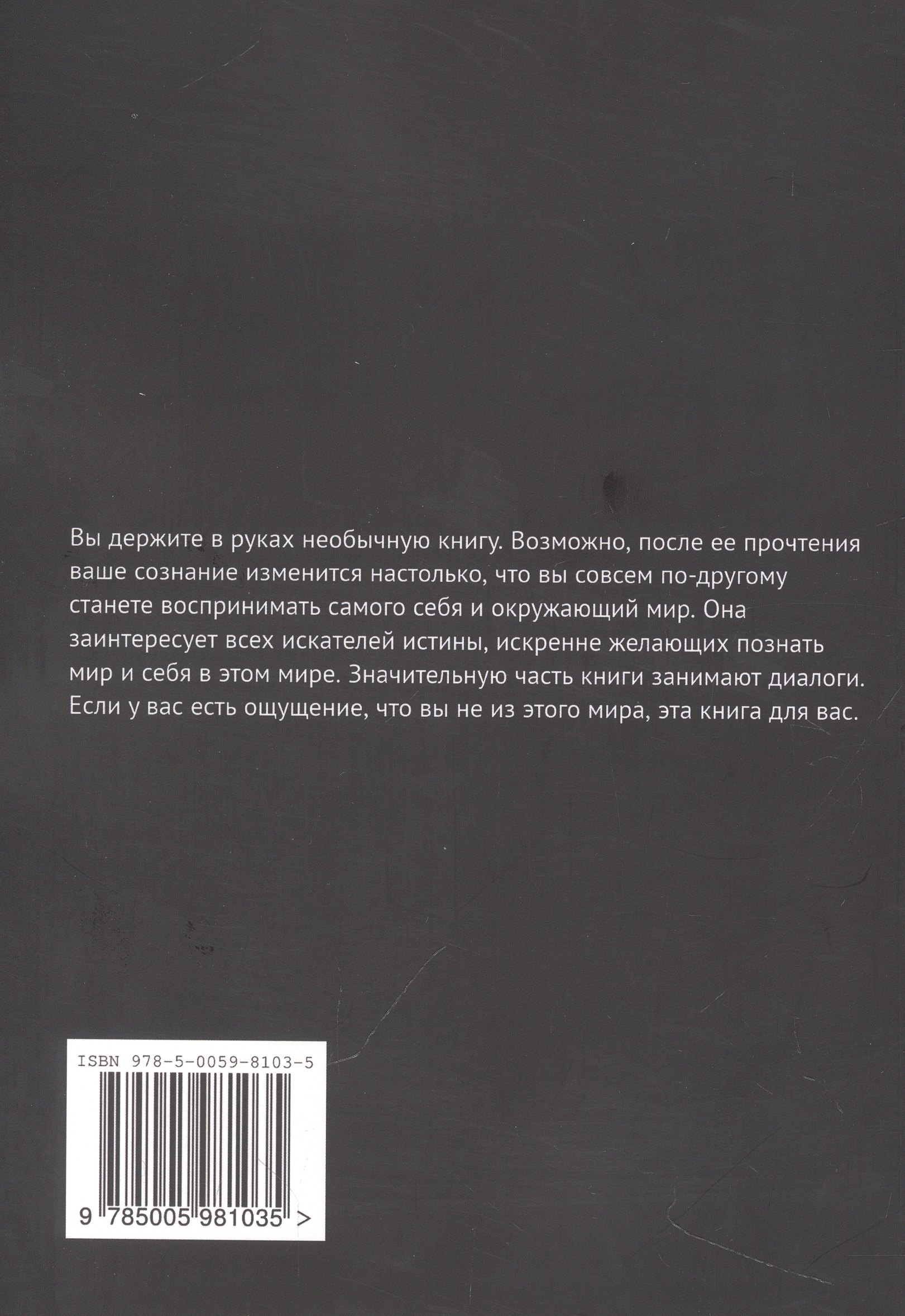 Вы держите в руках необычную книгу. Возможно, после ее прочтения ваше сознание изменится настолько, что вы совсем по-другому станете воспринимать самого себя и окружающий мир. Она заинтересует всех искателей истины, искренне желающих познать мир и себя в этом мире. Значительную часть книги занимают диалоги. Если у вас есть ощущение, что вы не из этого мира, эта книга для вас.