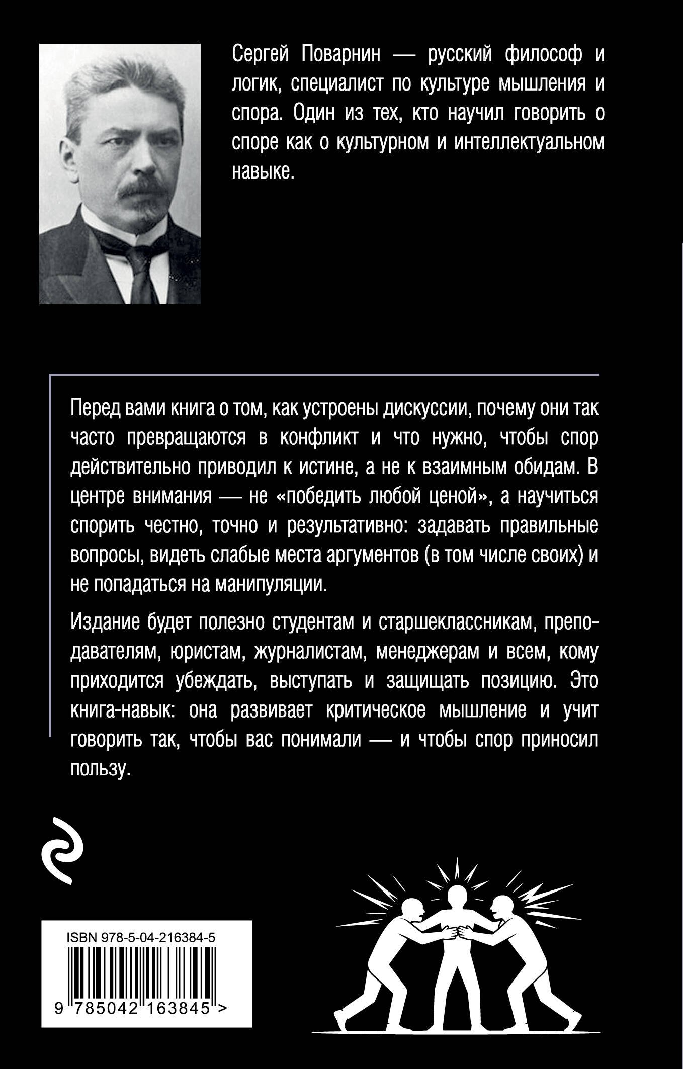«Искусство спора. О теории и практике спора» Сергея Поварнина — классическая книга о том, как спорить умно и честно. Написанная еще в 1918 году, книга удивительно точно описывает то, что происходит в дискуссиях сегодня — от учебных и рабочих обсуждений до публичных дебатов и семейных разговоров.