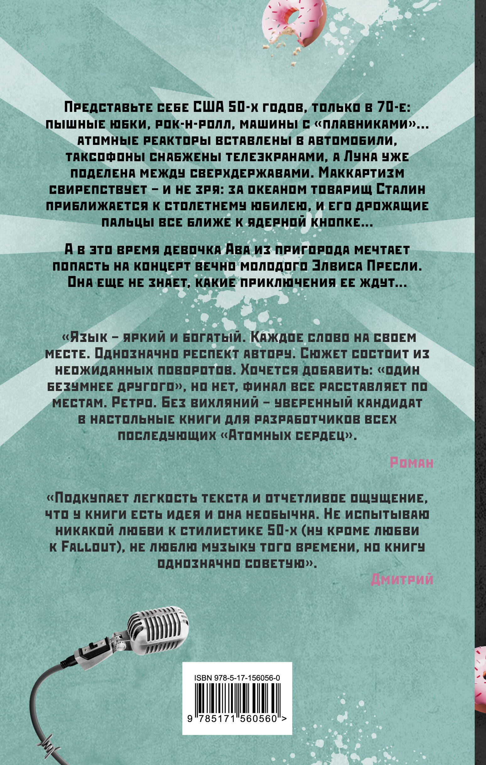 Обложка в сочетании с названием позволяют получить вполне четкое представление о содержании книги. И даже шрифт полностью соответствует заданной теме. Надо сказать, что попадание просто стопроцентное. Едва взглянув на книгу и прочитав название, я услышала забойный рок-н-ролл. И автор меня не обманула. С первой же строки - бах! - и ты уже несешься по хайвею в широкорылом розовом Кадиллаке с открытым верхом, и кажется, что еще чуть-чуть, и откуда-то из за угла выскочит Марти МакФлай в своем ДеЛориане. Нет войне, Элви жив, рок-н-ролл! Холодная война, красная угроза, железный занавес...