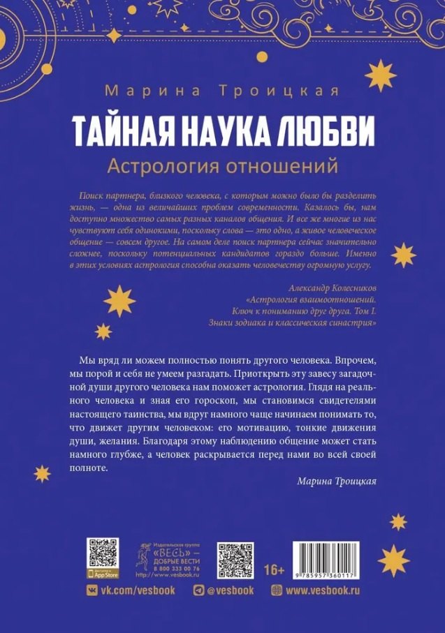Прочитала книгу 'Тайная наука любви' Марины Троицкой, и она оказалась очень интересной и полезной. В книге пять частей, и каждая раскрывает что-то новое об астрологии и отношениях.