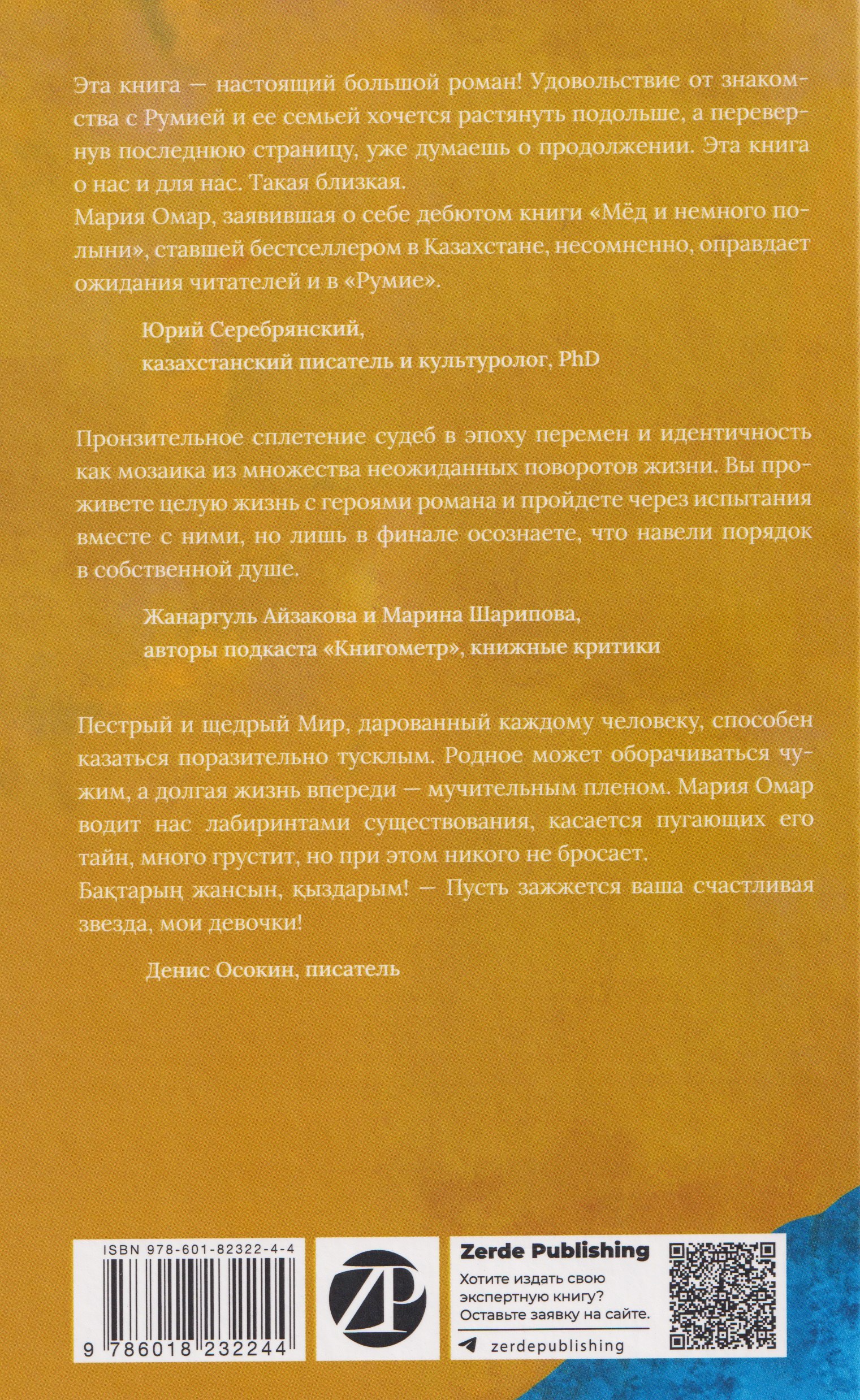 Роман затягивает, сюжет закручен, герои яркие, атмосфера колоритная: посёлок в Казахстане, юрты кочевников, Оренбург, Алматы, казахи, татары, русские, всё перемешано, но регулярно распадается на «наши» и «они». Страниц достаточно, чтобы всё рассмотреть, попробовать, обжиться, а героев полюбить — возненавидеть. С Румиёй хочется разговаривать, а иногда — хорошенько тряхнуть и наорать. В окончание истории как-то не верится. Очень хочется продолжения.
