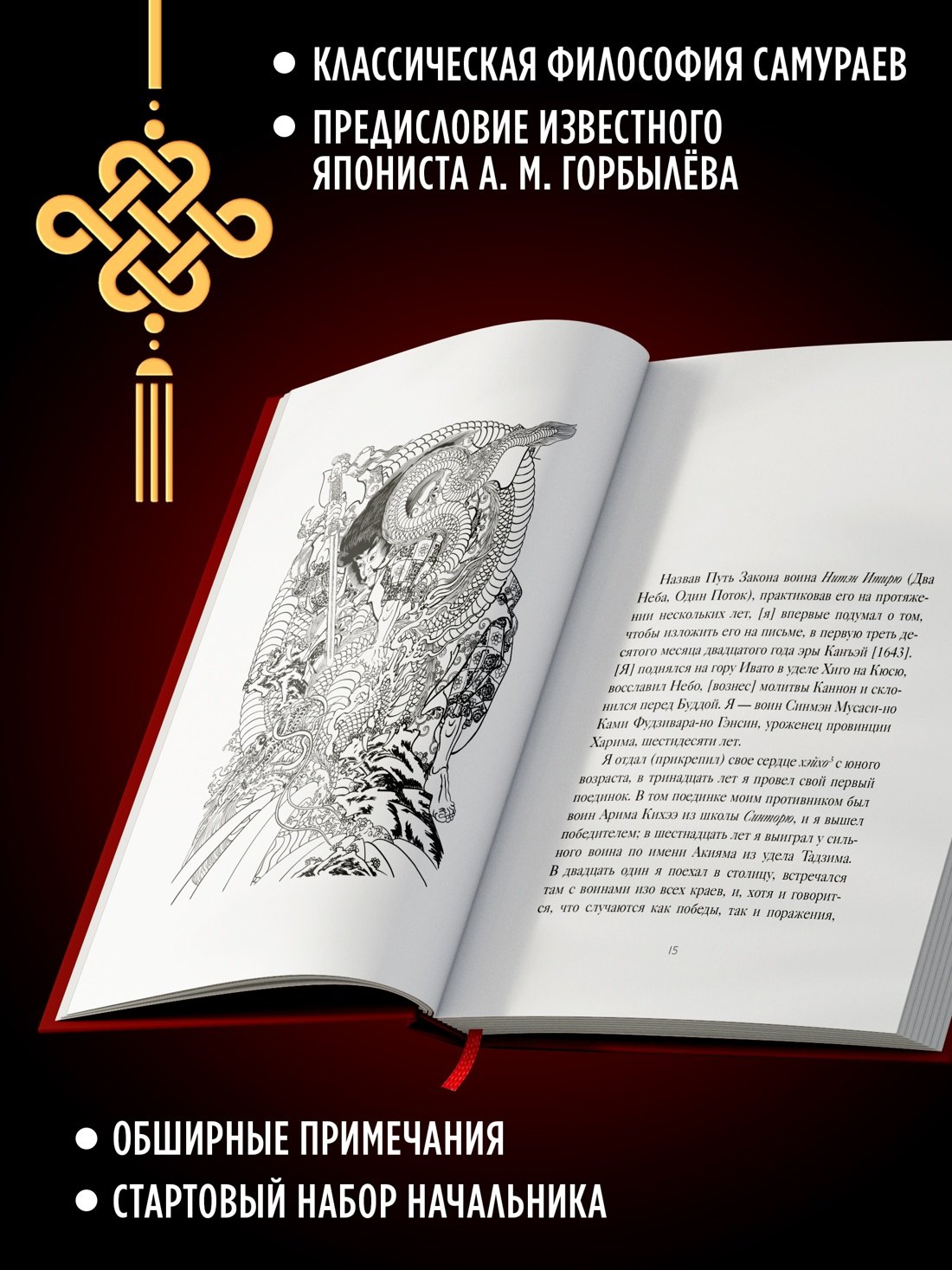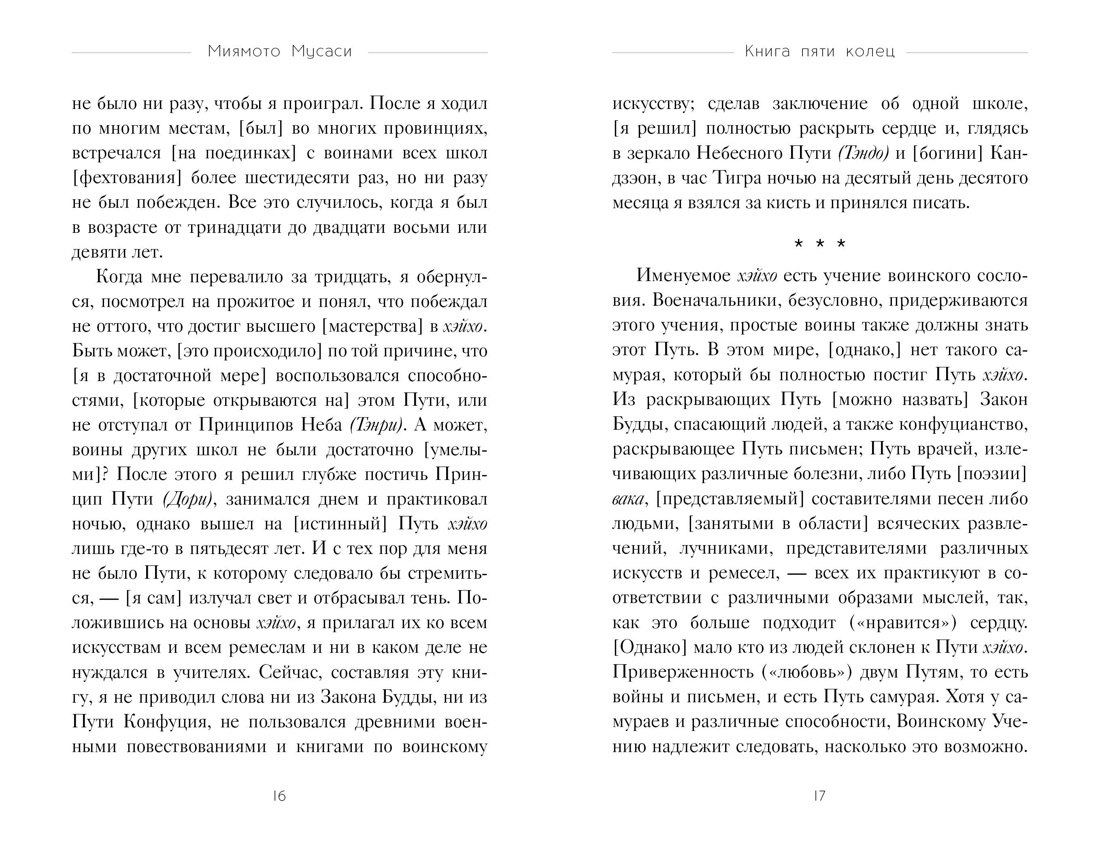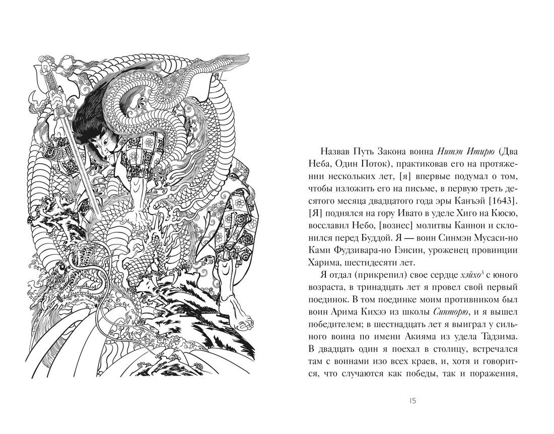 Перед вами знаменитый труд Миямото Мусаси — уникальный путеводитель по военной стратегии и жизненной философии. В нем воплощён многовековой опыт, который помогает понять законы мира и своё место в нём. Книга разделена на пять частей — Земля, Вода, Огонь, Ветер и Пустота, каждая отражает природу вещей и внутренний мир человека, наполнена тонкой японской поэзией и символизмом. Дополняют издание наставления Дайдодзи Юдзана — мудрого учителя Воинского Пути. Вместе эти тексты дают редкую возможность прикоснуться к классической философии самураев и получить ценные знания, полезные не только мастерам боевых искусств, но и всем, кто стремится овладеть искусством стратегии и успеха в жизни.
