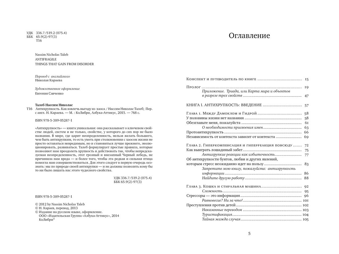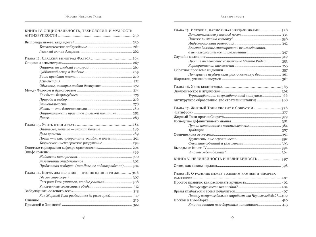 для меня «Антихрупкость» читалась проще (несмотря на постоянные паузы для обдумывания прочитывания – так и должно быть), чем предыдущие две книги: «Одураченные случайностью» и «Черный лебедь». во время чтения «Антихрупкости» всё то, что читал ранее, как бы складывалось в целое, поэтому мой личный совет прочитать сначала первые две книги. так вы сможете проследить за тем, как развивалась у автора идея антихрупкости. но если вы все же решили начать с этой книги, удовольствие вам гарантировано.