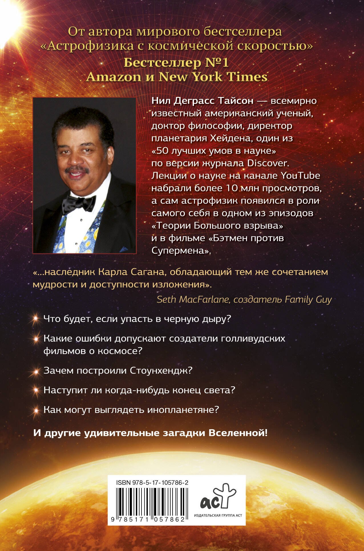 Занимательная книга, просто и интересно рассказано о множестве вещей связанных с астрофизикой от одного из самых известных популяризаторов науки сегодня. Рекомендуется для повышения эрудиции.