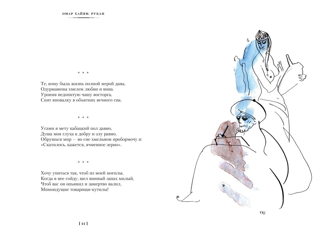 В этом небольшом сборнике Хайям больше пьяница и забулдыга – множество рубаи о вине врезаются в память и вырезают там впечатление о поэте. Но почему-то этот огрех ему прощается, может быть, из-за не покидающего чувства, что стихи вышли из-под пера талантливого мудреца?