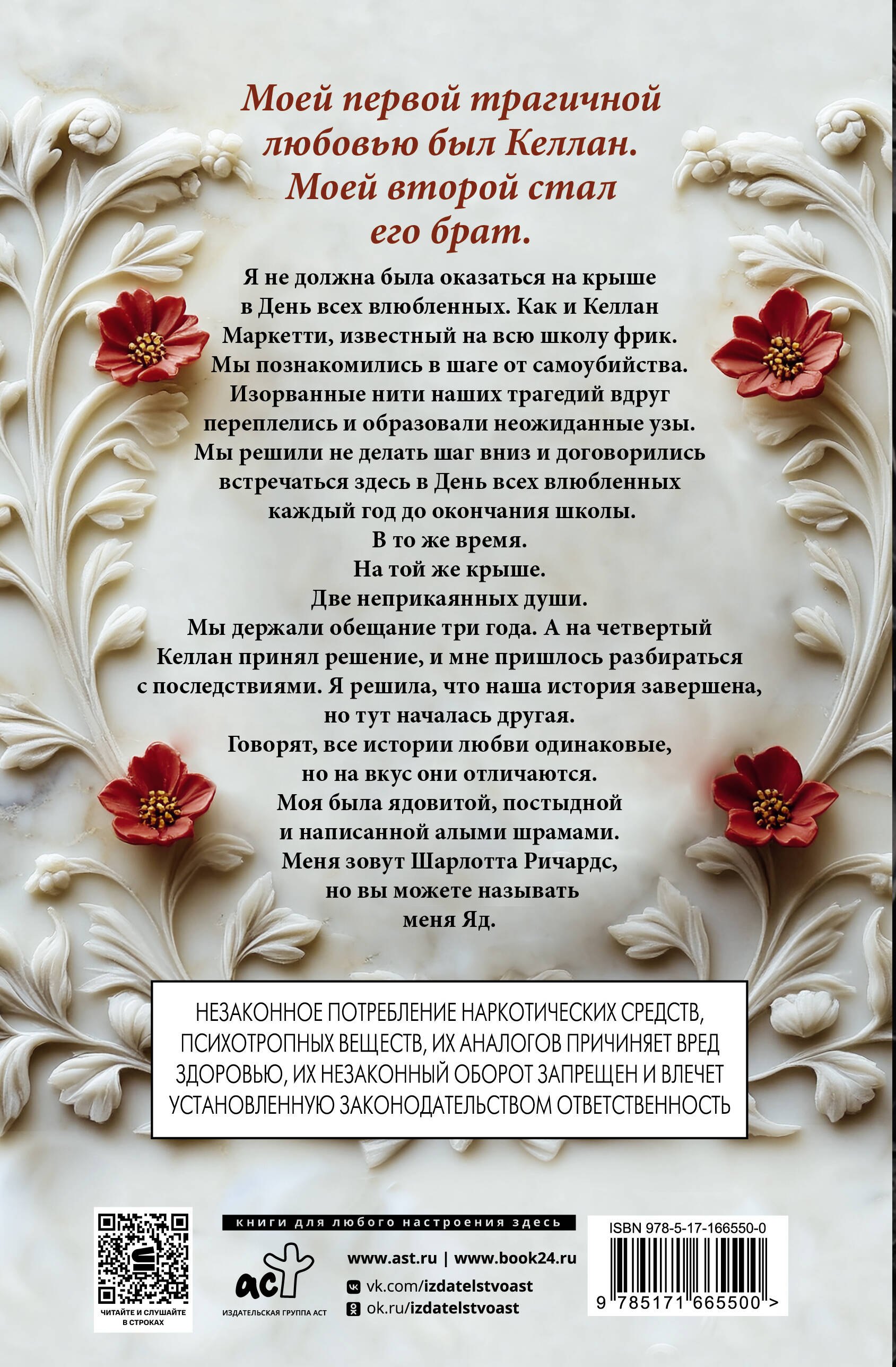 В то же время. Одна крыша. Две беспокойные души. Мы сдерживали свое обещание в течение трех лет. Четвертого числа Келлан принял решение, и мне пришлось разбираться с последствиями. Когда я подумал, что наша история закончилась, то началась другая. Говорят, все истории любви выглядят одинаково, а на вкус разные. Моя была ядовитой, позорной и написанной алыми шрамами. Меня зовут Шарлотта Ричардс, но вы можете звать меня Яд