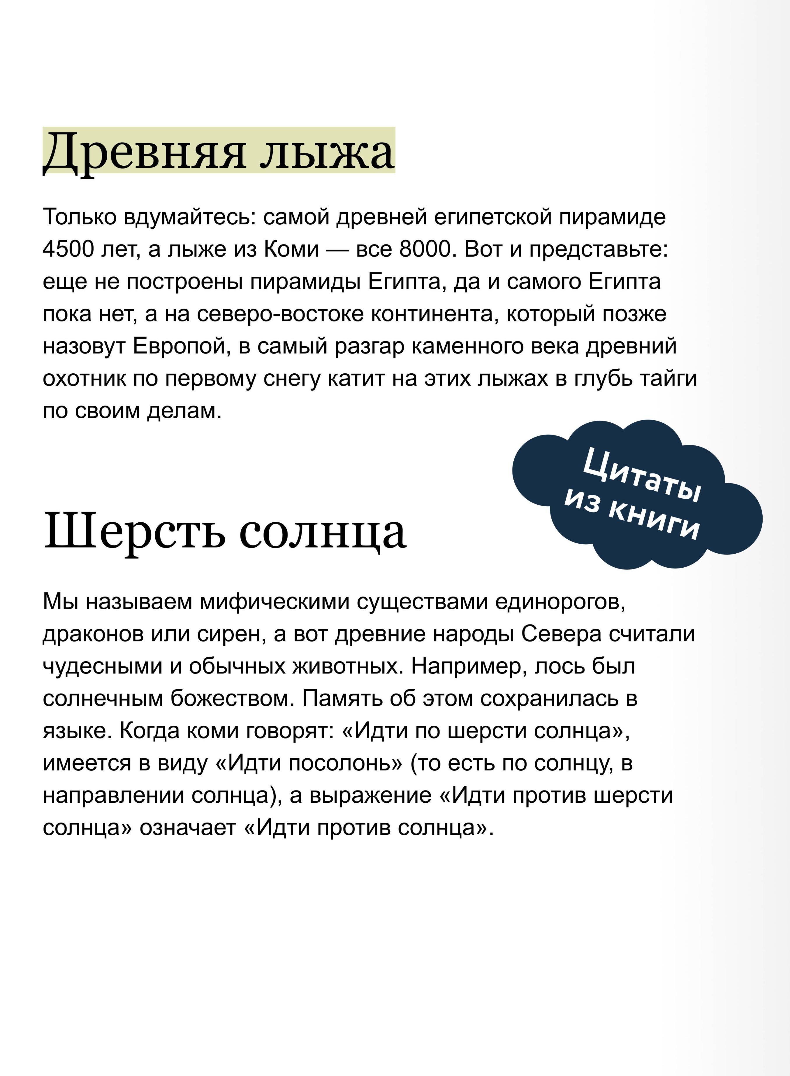 В этой книге вы узнаете о суровых богах и опасных духах пермских мифов, о богатырях-великанах и малорослой чуди, о животных-предках и волшебных предметах. А еще о том, почему детям запрещали свистеть, зачем отпускали первую пойманную рыбу и о чем разговаривали с деревьями.