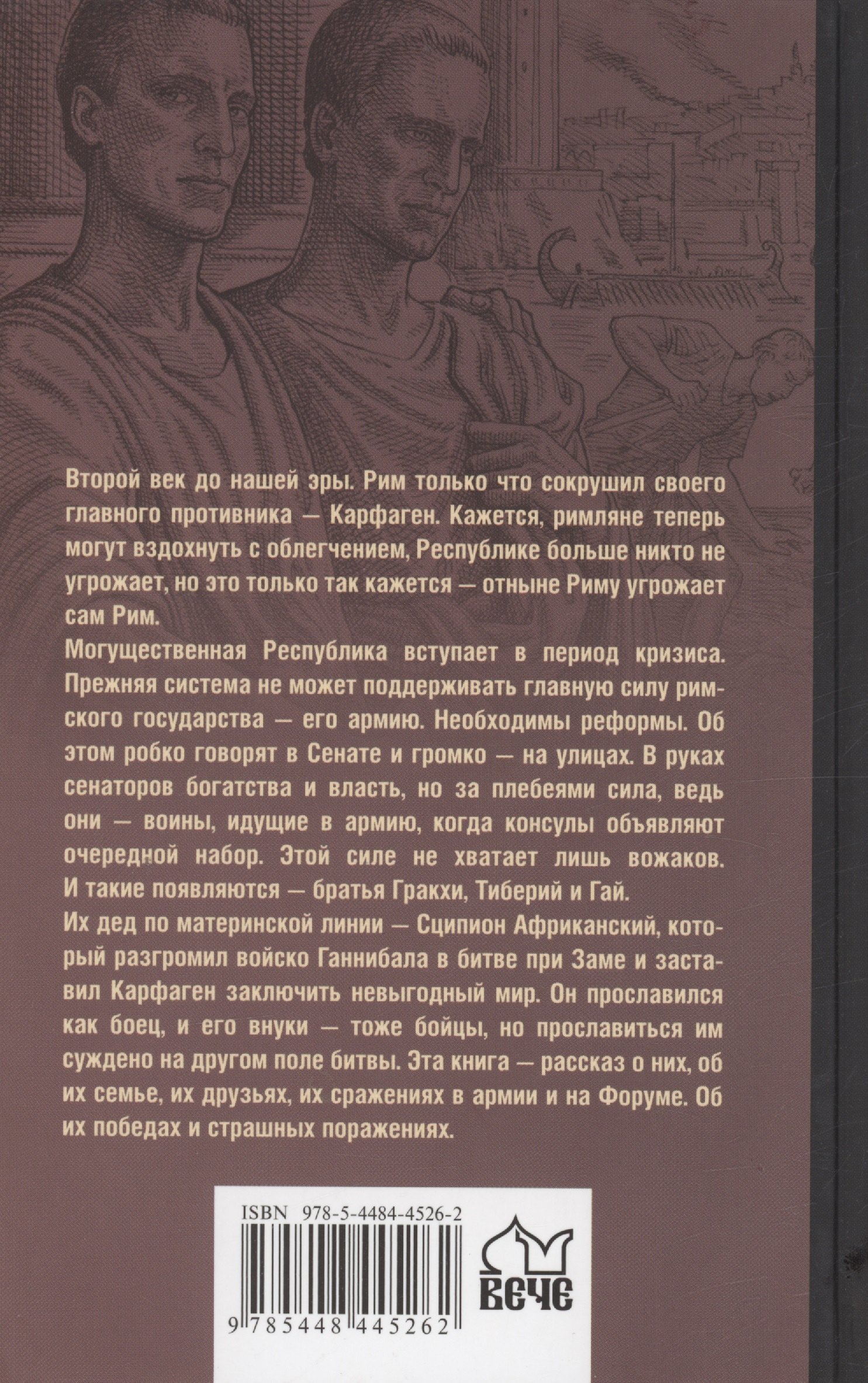 Их дед по материнской линии - Сципион Африканский, который разгромил войско Ганнибала в битве при Заме и заставил Карфаген заключить невыгодный мир. Он прославился как боец, и его внуки - тоже бойцы, но прославиться им суждено на другом поле битвы. Эта книга - рассказ о них, об их семье, их друзьях, их сражениях в армии и на Форуме. Об их победах и страшных поражениях.