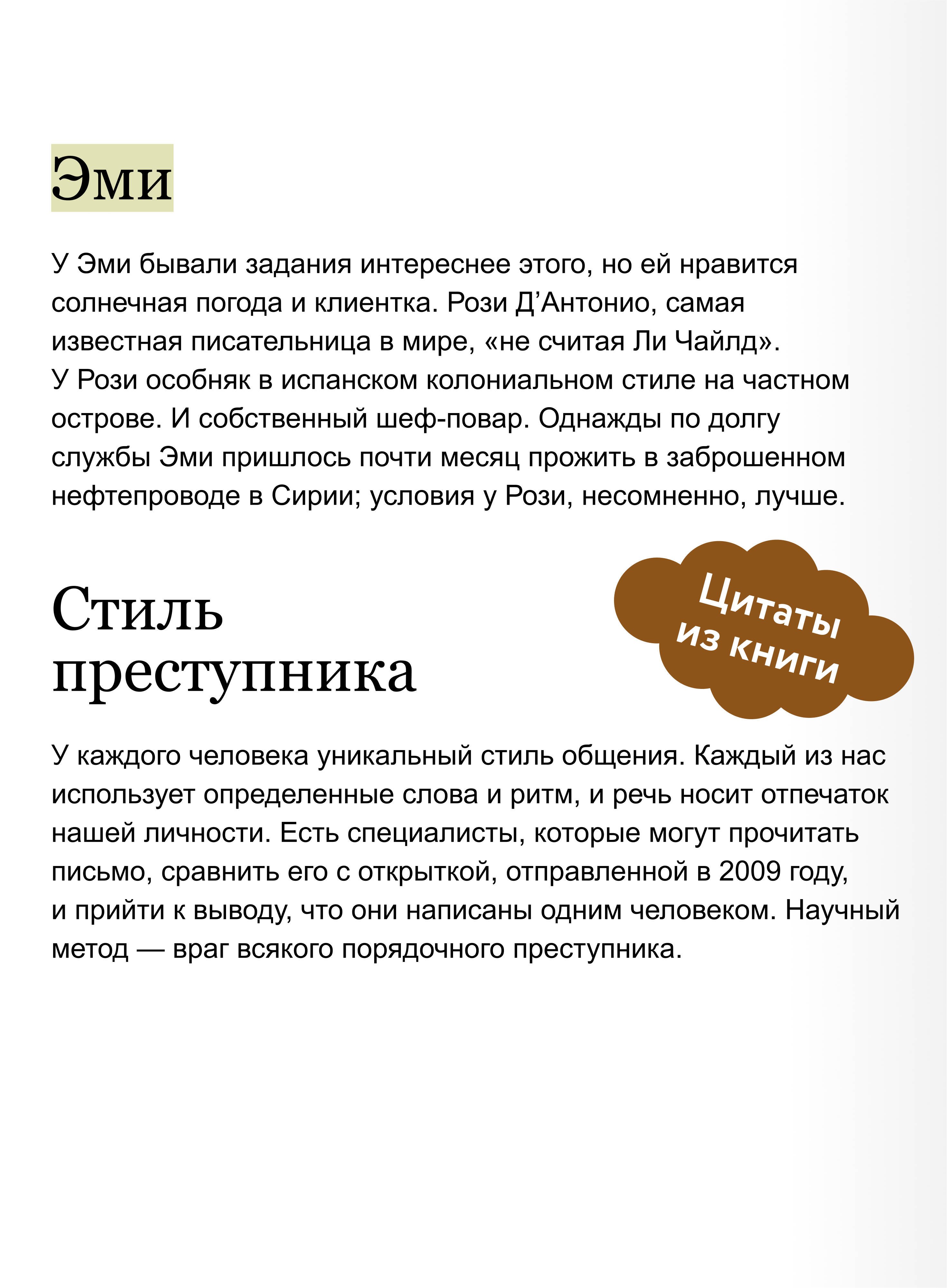 Эми Уилер не привыкла подолгу сидеть дома: вот и сейчас она охраняет известную писательницу Рози Д'Антонио на частном острове в Атлантическом океане. Не работа, а мечта… Так думает Эми, пока поблизости не находят тело звездного фитнес-блогера, брошенного на съедение акулам, и сумку, набитую деньгами.