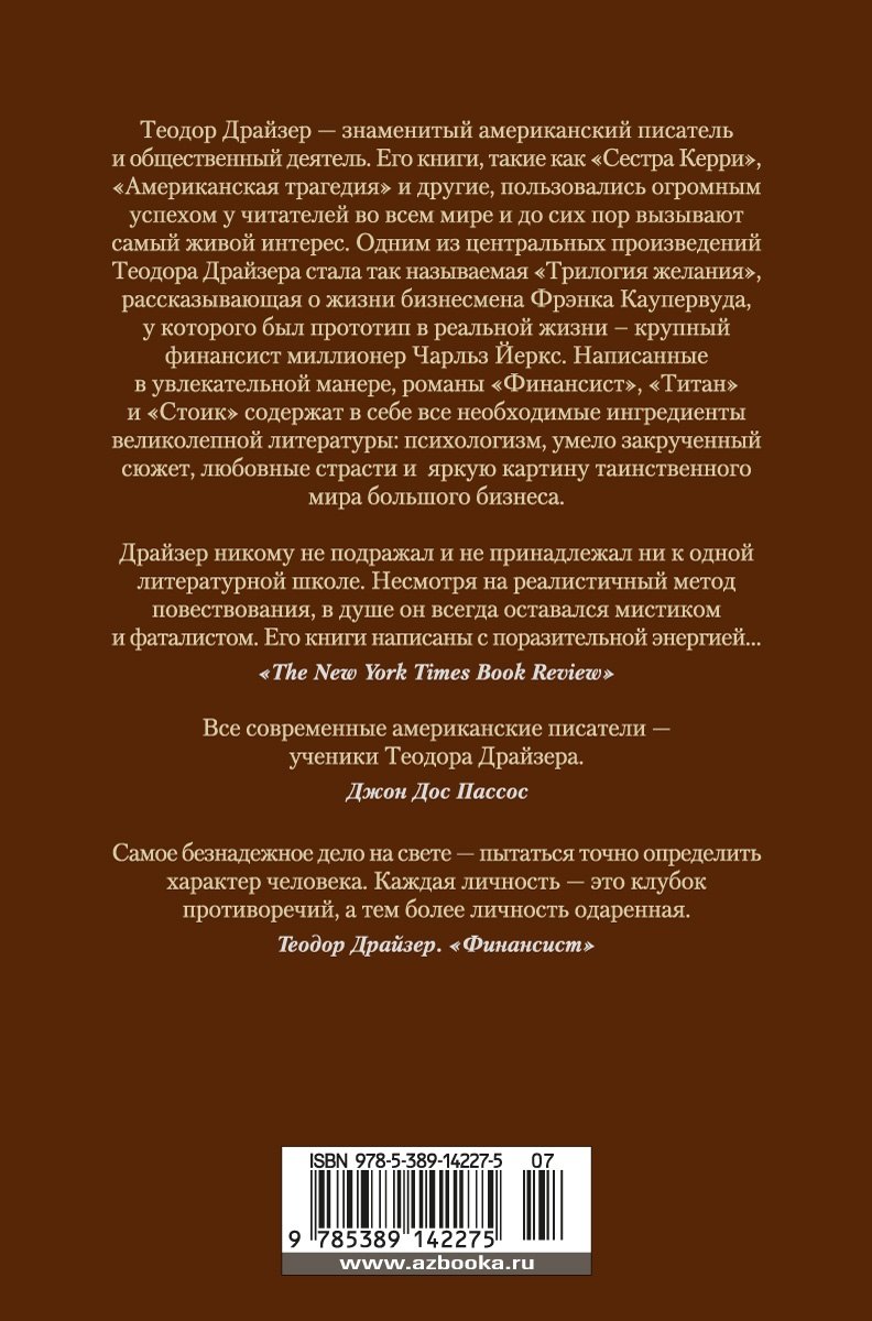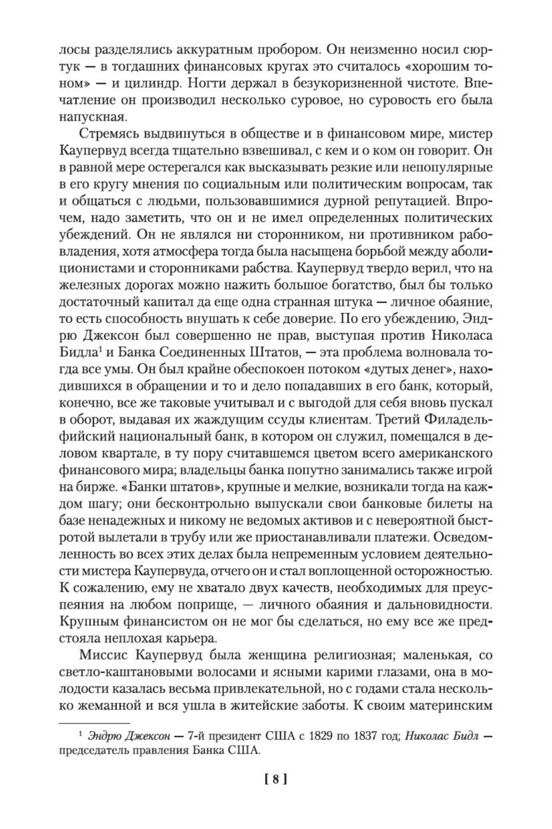 Каупервуд внимательно следил за тем, чтобы все его текущие обязательства оплачивались своевременно или даже досрочно, так как ему важно было показать всем свою неукоснительную платежеспособность. Ничего нет ценнее хорошей репутации и устойчивого положения. Его