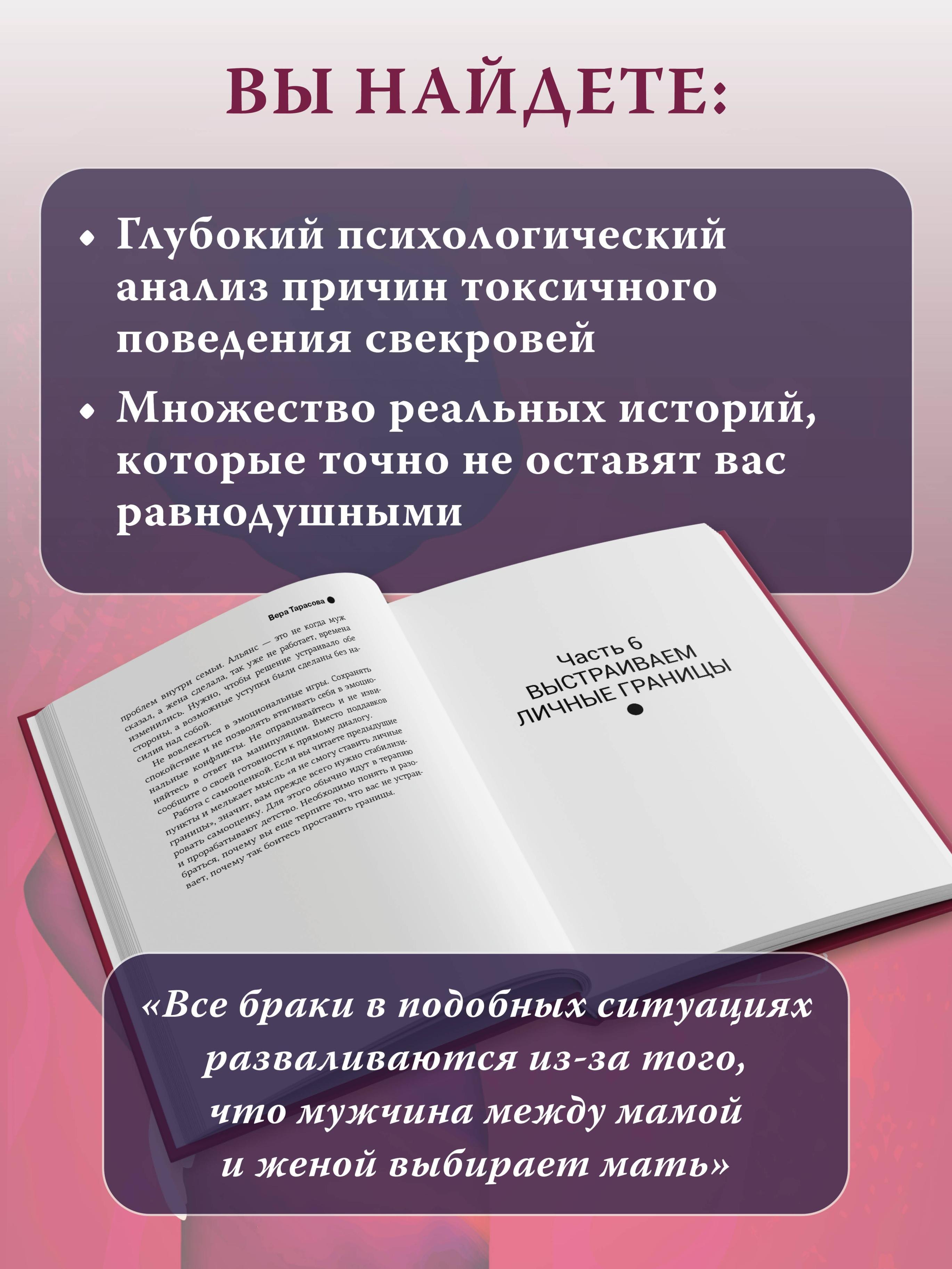 Подруга посоветовала эту книгу, когда она увидела, что мои отношения со свекровью превращаются в настоящий кошмар. Перед прочтением мне казалось, что я одна такая несчастная, но оказалось – таких историй много. Автор не просто дает советы "держись", а объясняет, почему свекровь ведет себя именно так. Читаю и прямо узнаю знакомые ситуации.