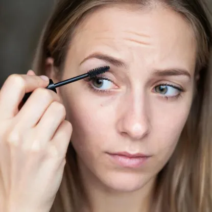 Женская привычка красоты - следить за мимикой во время нанесения туши на реснички - не морщить лоб.